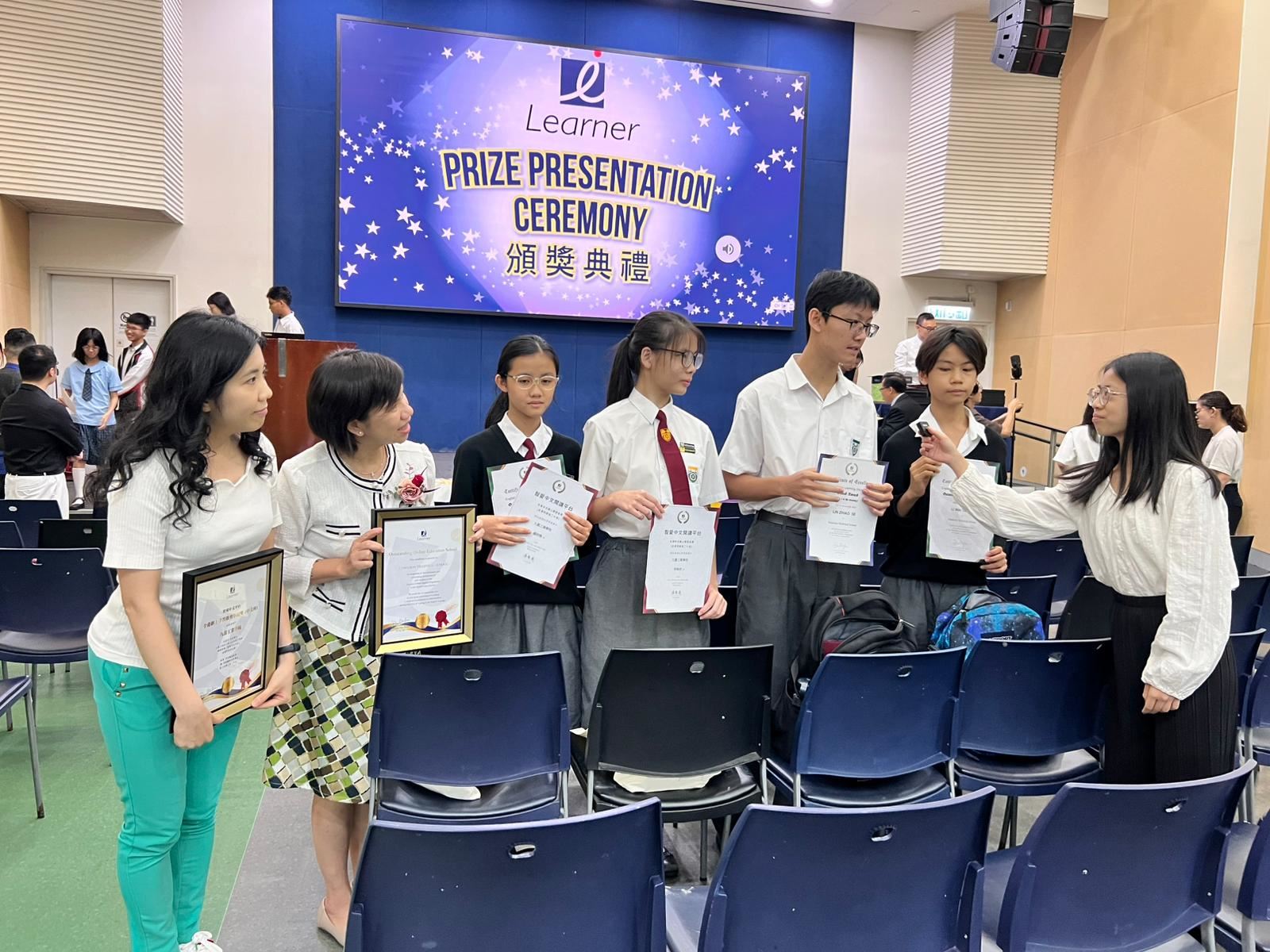 李詠欣(1E)、羅詩雅(1E),李偉達(2E)、林梓浩(5E)出席第42屆智愛學生頒獎典禮,他們除了獲頒獎狀外,還接受訪問,講解得獎感受和學習心得。