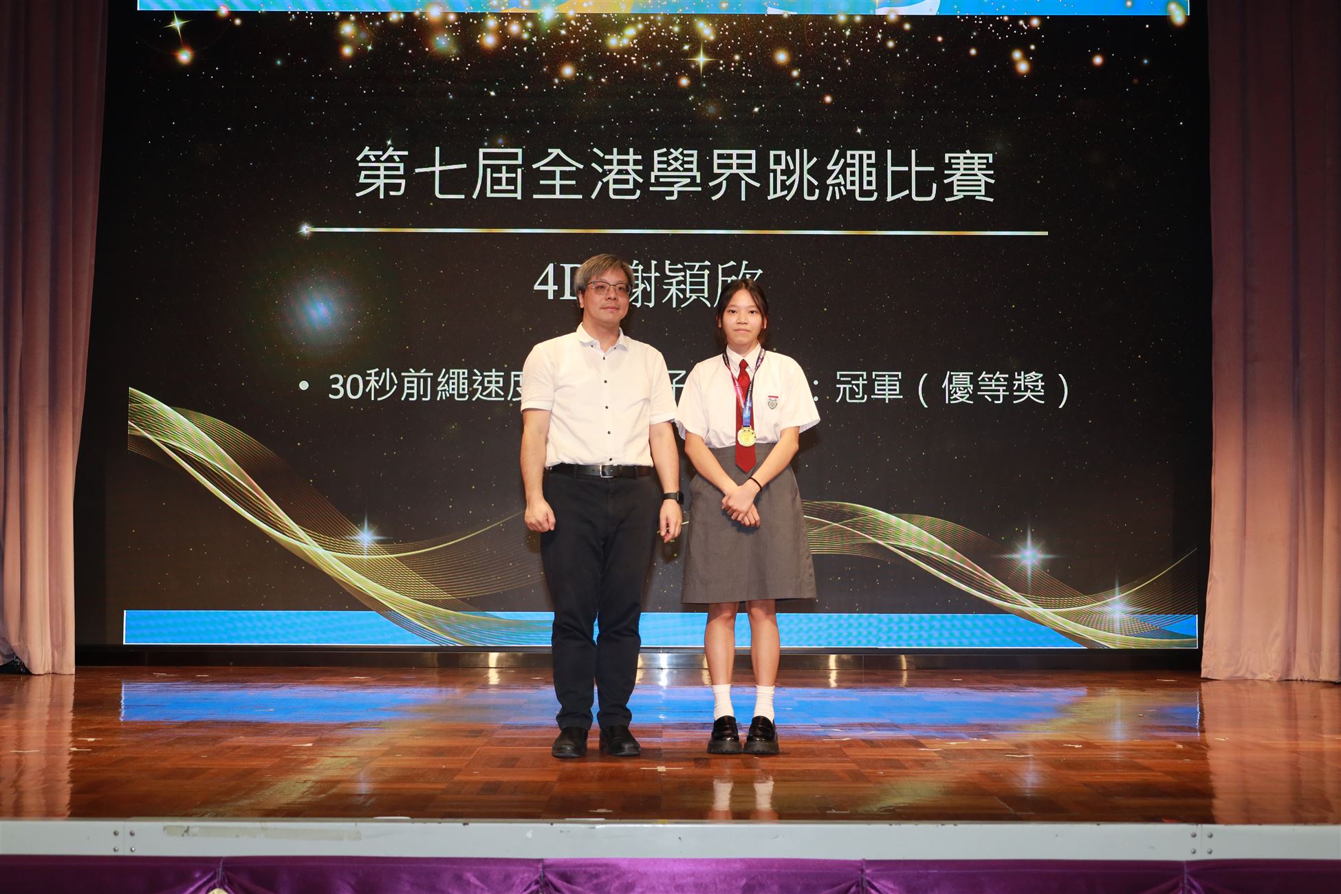 4D 謝穎欣:30秒前繩速度中學女子高級組冠軍(優等獎)