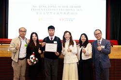 張煒(5D) 勤奮學習,音樂才華出眾,積極參與學校活動,獲頒2025年「黃廷方獎學金」。