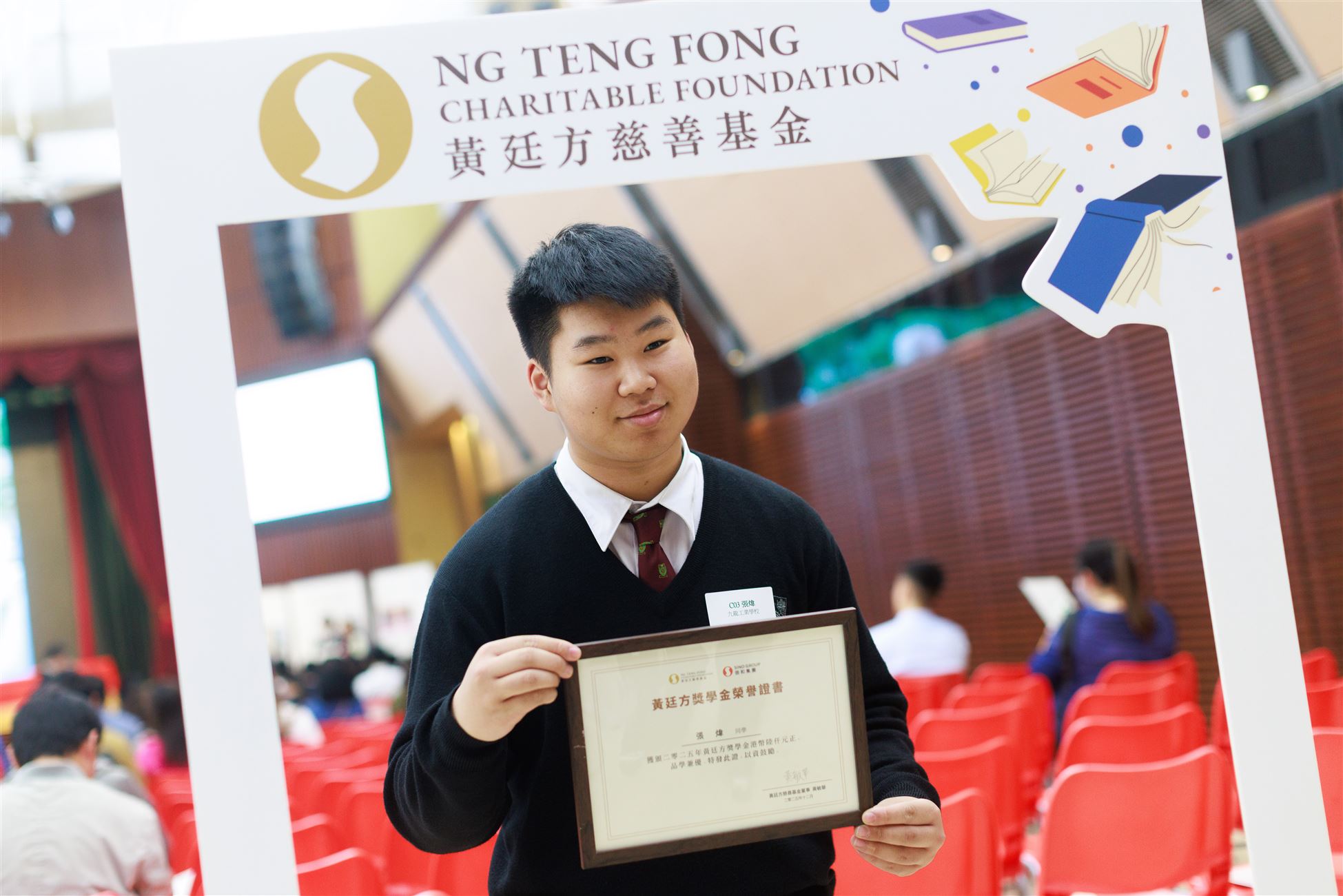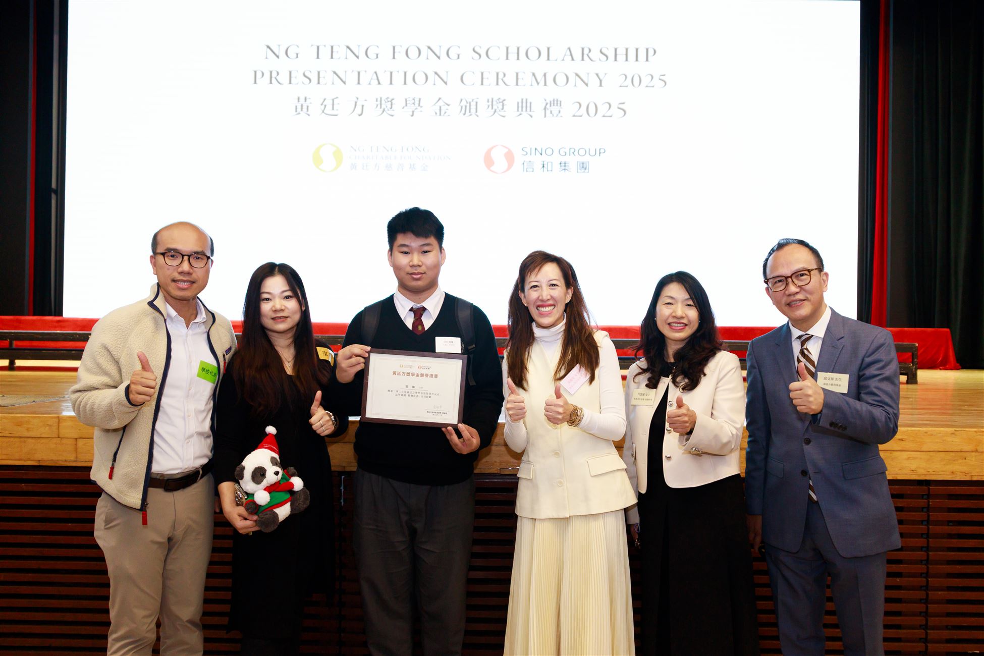 張煒(5D) 勤奮學習,音樂才華出眾,積極參與學校活動,獲頒2025年「黃廷方獎學金」。