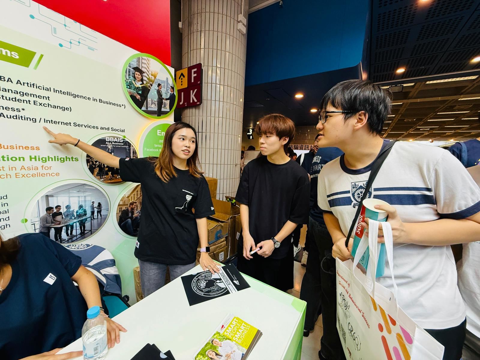 生涯規劃組帶領高中同學參觀城市大學資訊日。同學們主動了解不同課程內容、特質及入學要求等資訊,他們參與大學收生講座及AI創新資訊站等,強化對未來升學規劃。